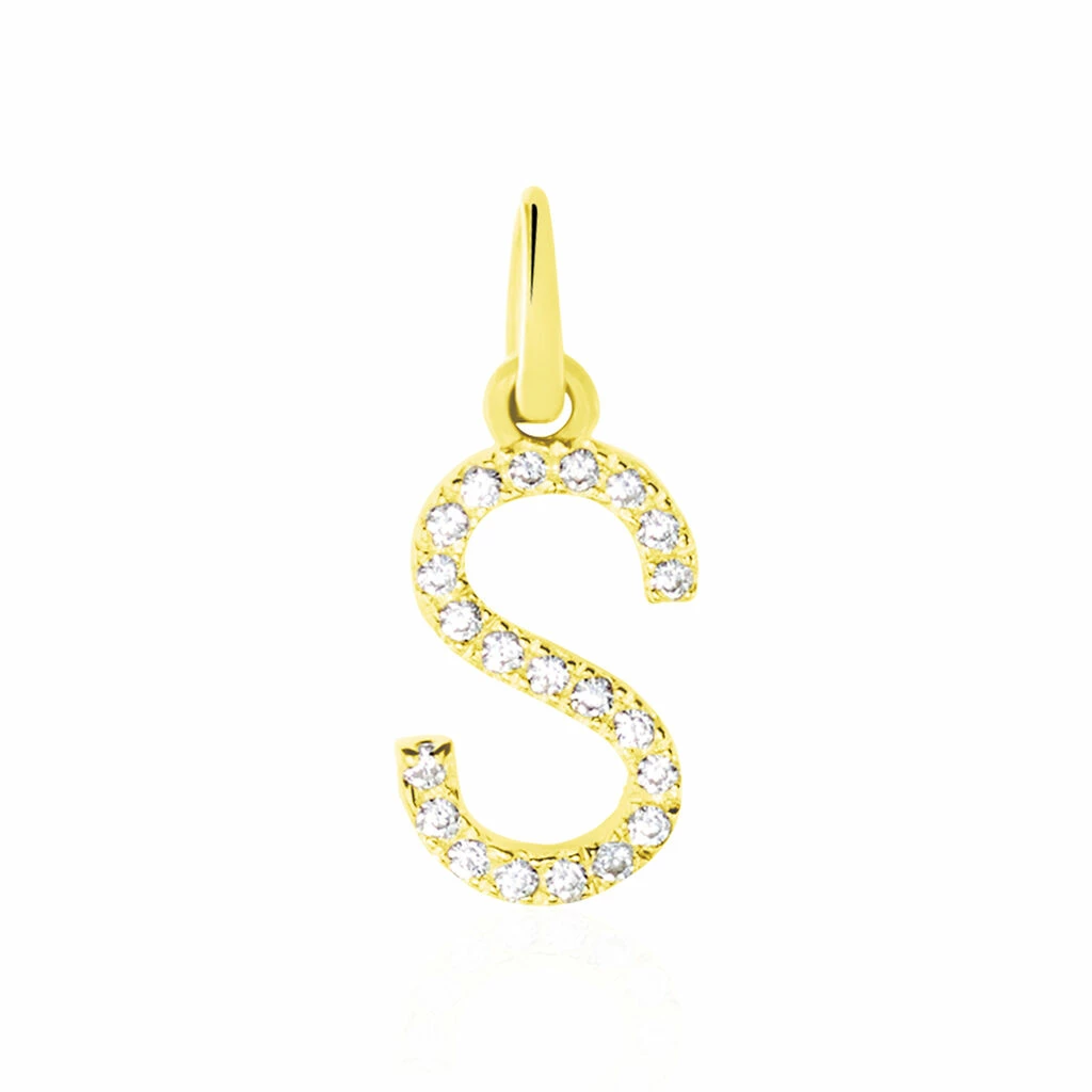 Pendentif Or Jaune 375/1000 Lettre S Oxydes De Zirconium Serti Griffes