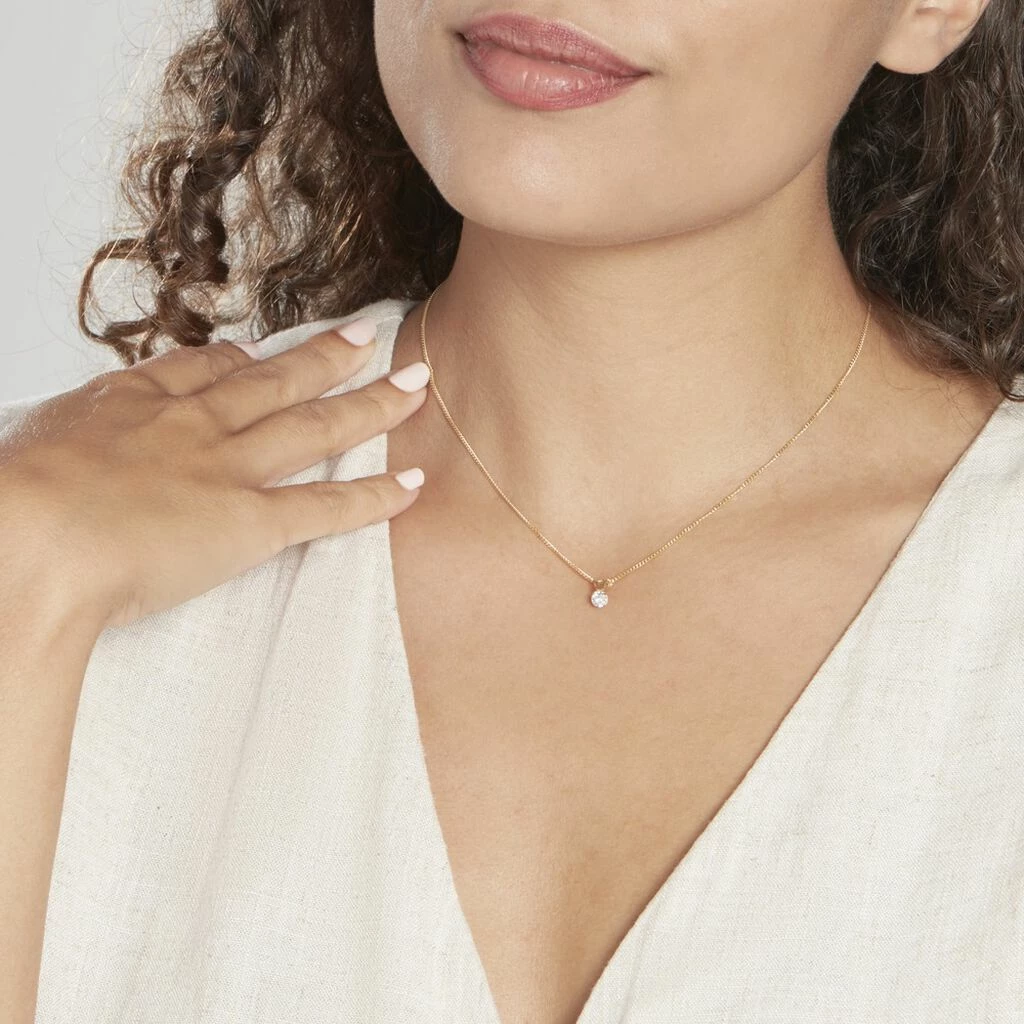 Pendentif Or Jaune 375/1000 Rond Oxyde De Zirconium 4mm