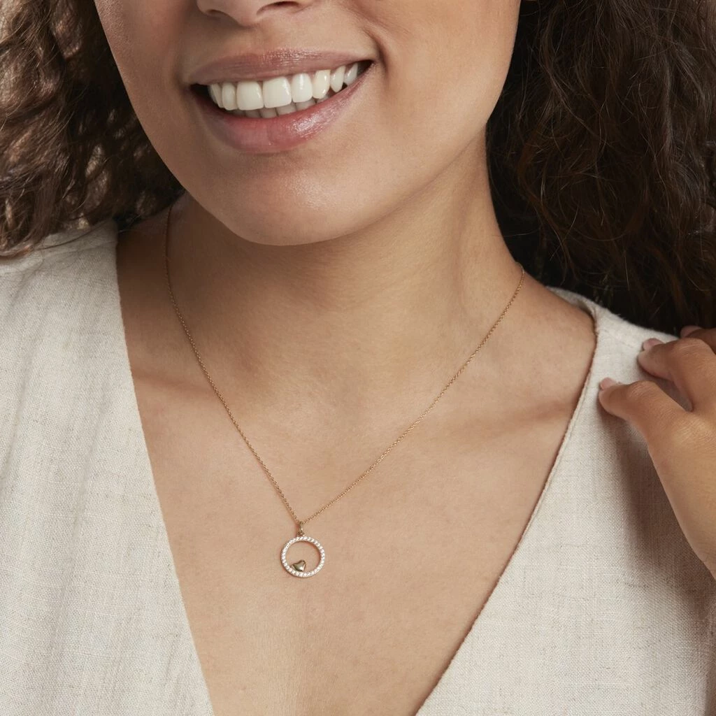Pendentif Or Jaune 375/1000 Cercle Ajouré Pavé Oxydes De Zirconium Motif Cœur Plein Central