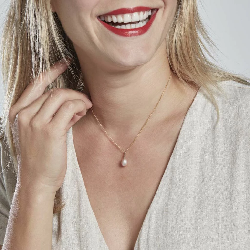 Pendentif Or Rose 375/1000 Perle De Culture Rose Forme Poire 7/7.5mm