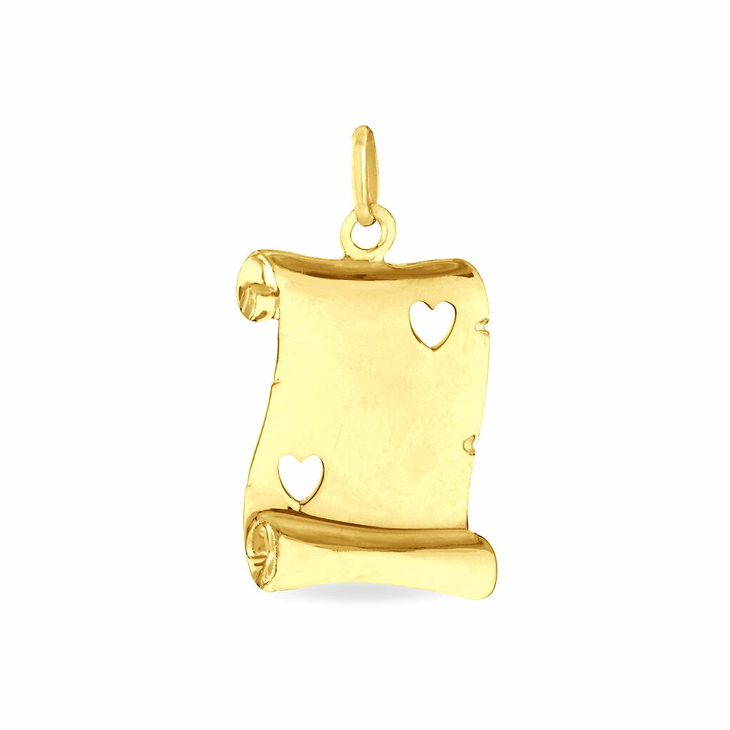 Pendentif Or Jaune 375/1000 Parchemin je T’aime Double Cœur Ajouré Gm