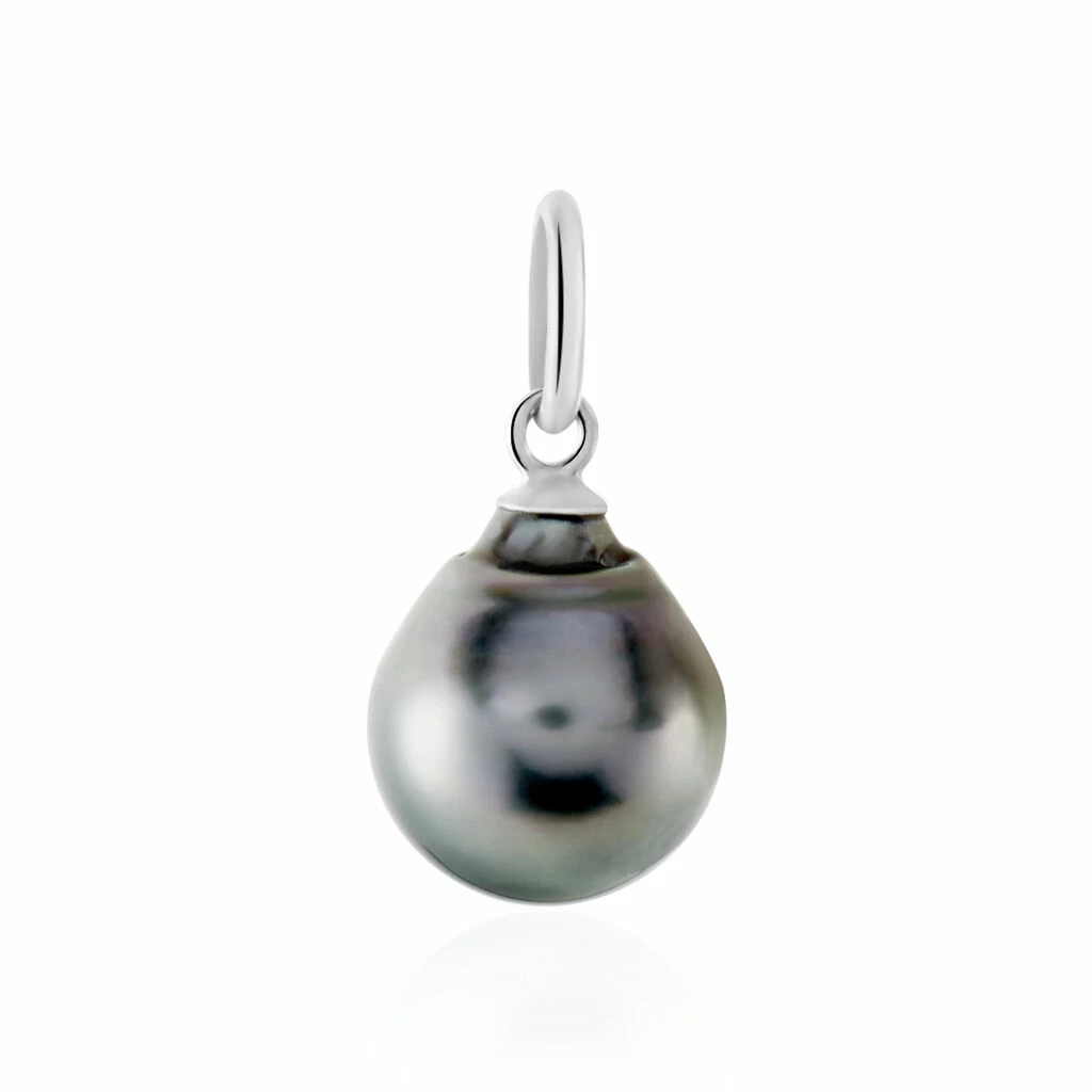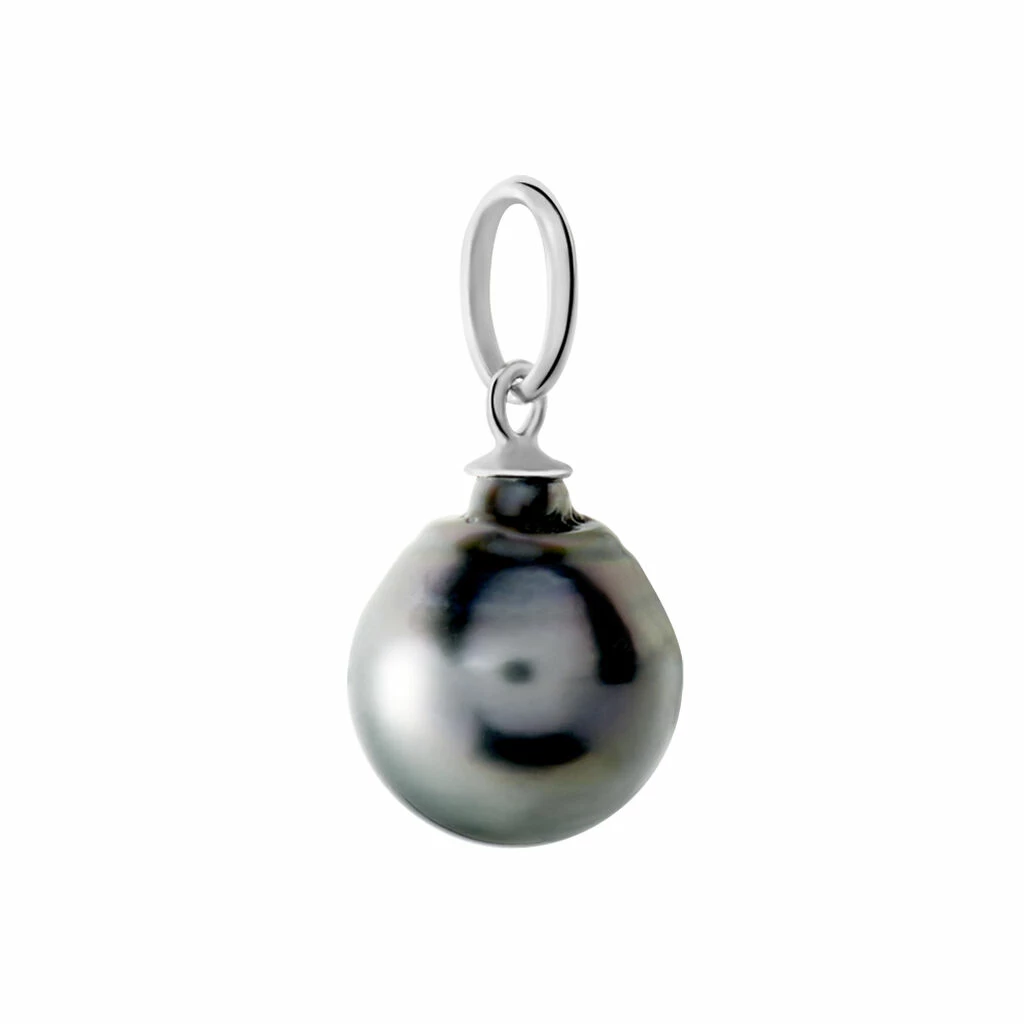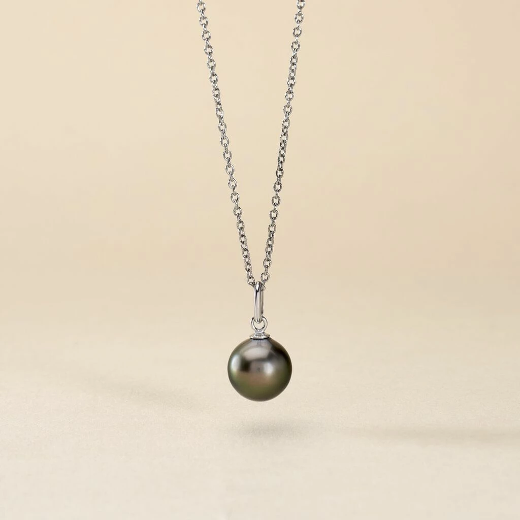 Pendentif Or Gris 375/1000 Perle De Culture De Tahiti Noire 9.5/10mm