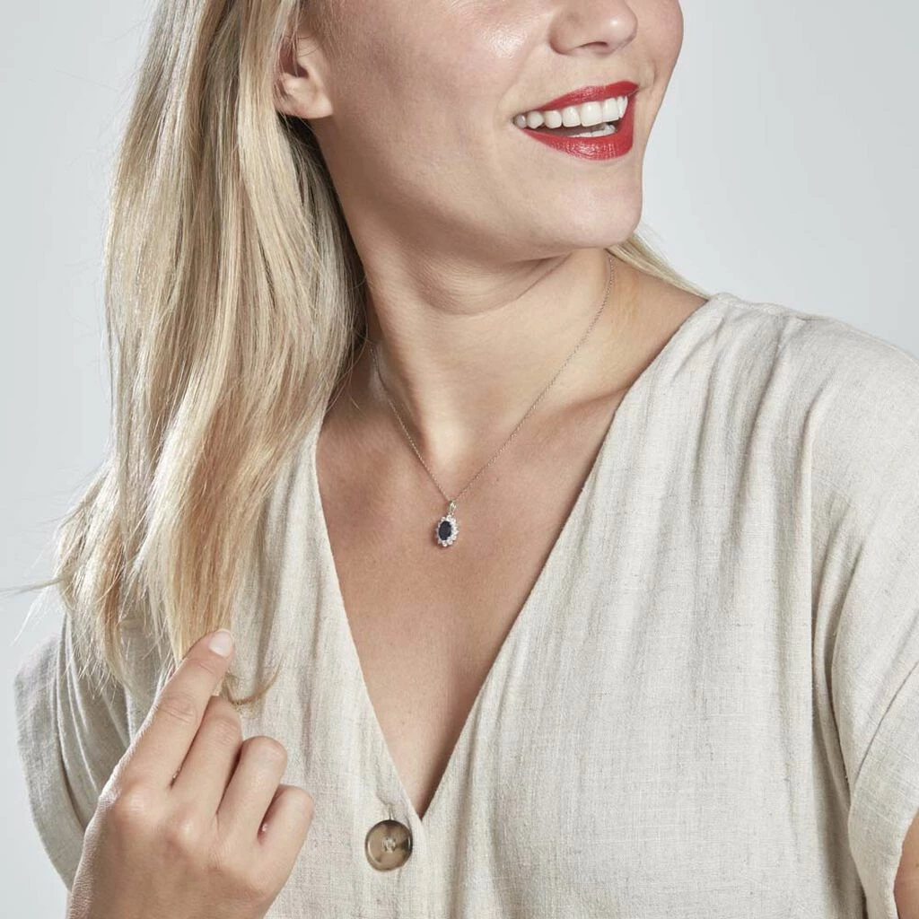 Pendentif Or Blanc 375/1000 Saphir 1.42ct Diamant