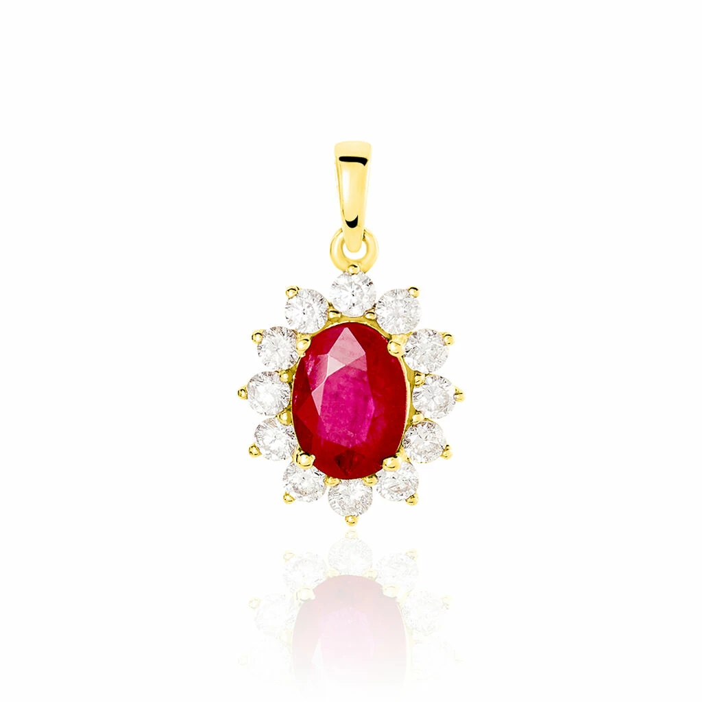 Pendentif Or Jaune 375/1000 Rubis 1.42ct Serti Griffes Diamant