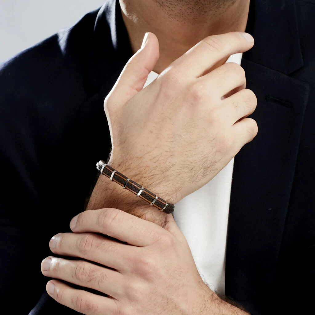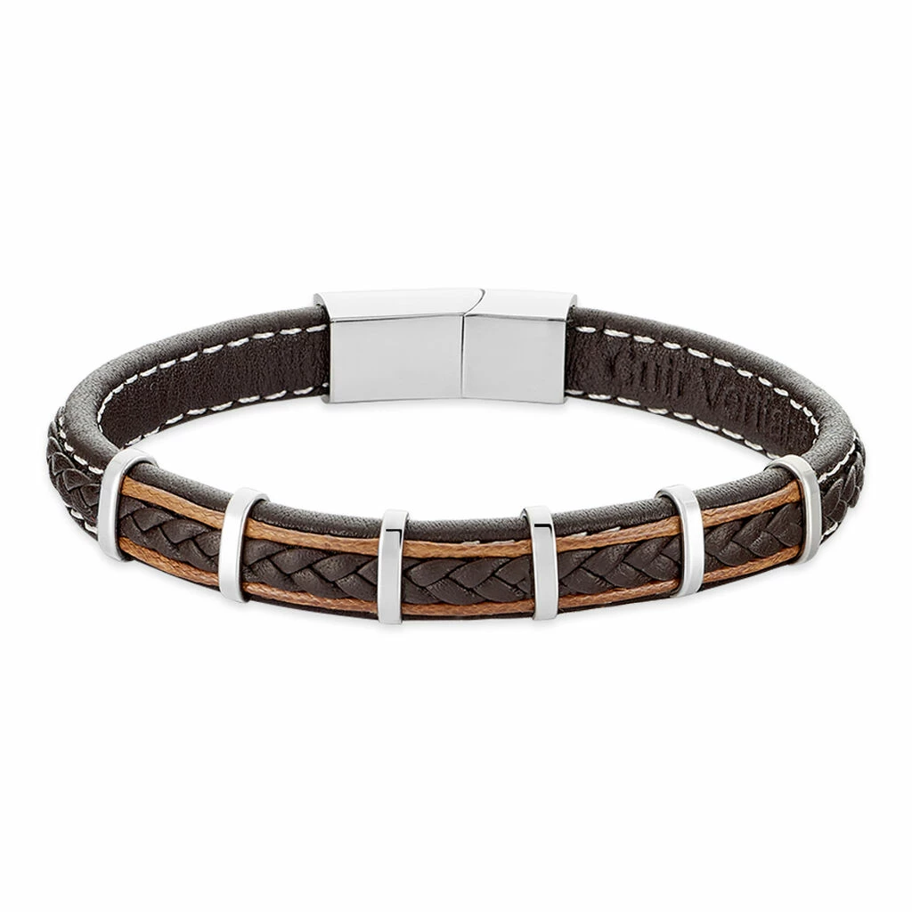 Bracelet Jourdan Acier Cuir Tresse Marron 19.50 / 21.00cm